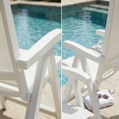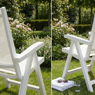 Grazie alla sua struttura pieghevole, la poltrona può essere riposta con il minimo ingombro durante i mesi invernali o trasportata con facilità. Il design pulito e l'estetica "tutto bianco" la rendono perfetta per giardini minimalisti, terrazzi moderni, bordi piscina esclusivi o per contesti professionali che richiedono eleganza e resistenza.