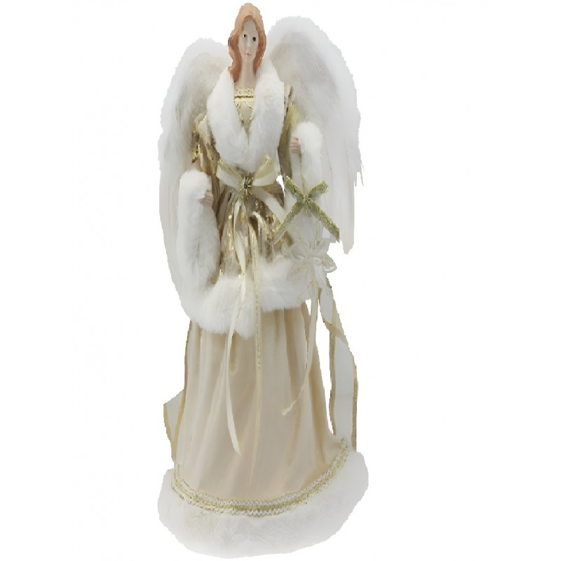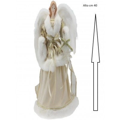 Scopri l'eleganza del nostro angelo decorativo in tessuto Bianco e oro, alto 40 cm,. Con un viso angelico in ceramica, ali bianche, pelliccia e ricami è perfetto come puntale per l'albero di Natale o come decorazione in ogni angolo della tua casa. Un'idea regalo straordinaria per le festività. Se ordinato entro le 13:00, spediremo lo stesso giorno con codice tracking del corriere e consegna entro 48 ore (se il corriere non ha intoppi).