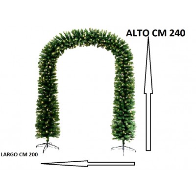 COSEDACASA Vi propone uno splendido arco decorativo natalizio verde, alto ben 240 cm e largo 200 cm, perfetto per decorare l’ingresso di qualsiasi attività commerciale, showroom, evento, fiera, festa privata o semplicemente la vostra casa.