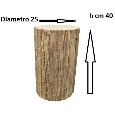 Tronco decorativo in legno grezzo naturale con corteccia esterna e basi rotonde.