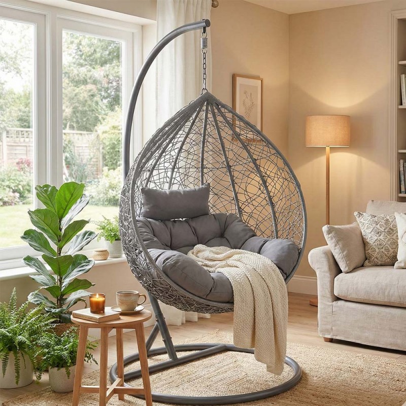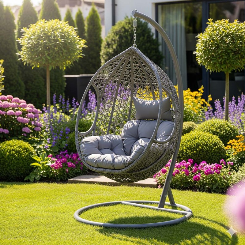 Cose da casa vi propone un'esperienza di relax superiore con questa poltrona sospesa a dondolo di alta qualità. Progettata per diventare il punto focale del vostro giardino, terrazzo o zona living, questa sedia a uovo (egg chair) combina un'estetica ricercata a una robustezza strutturale impeccabile.