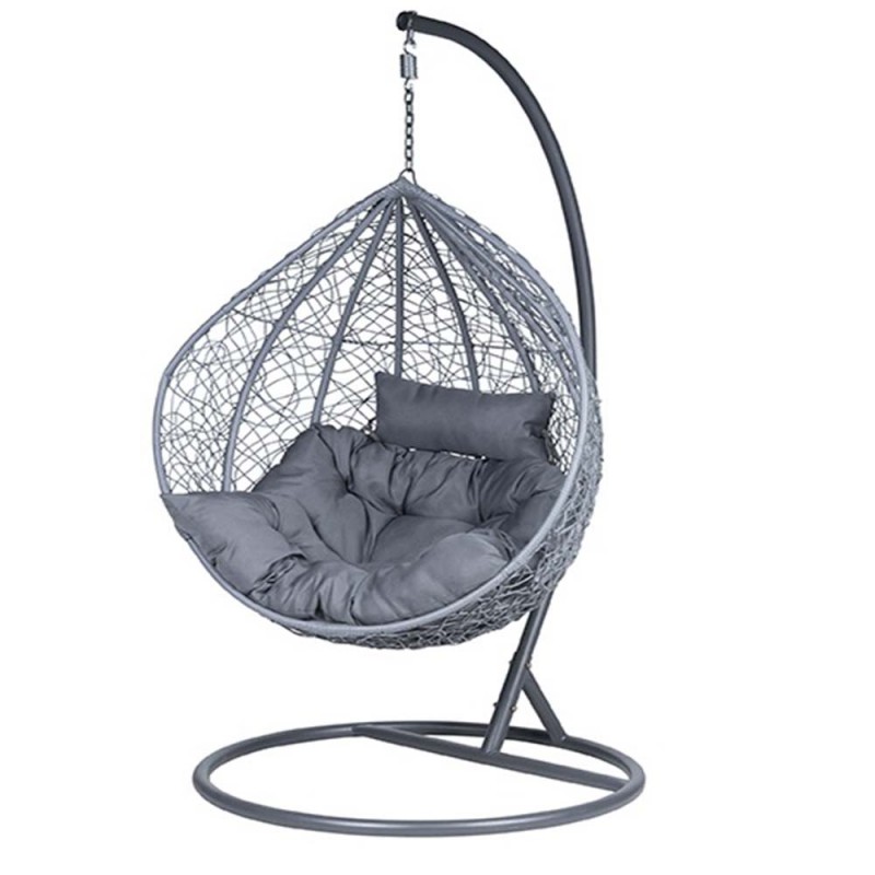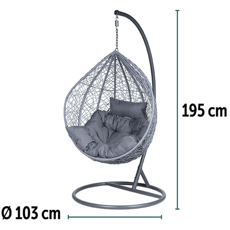 Cose da Casa vi propone soluzioni intelligenti e di stile, pensate per chi non vuole rinunciare alla bellezza nella propria quotidianità.Elegante poltrona sospesa a dondolo a nido composta da struttura in metallo rinforzato, cesto in rattan sintetico intrecciato e cuscino imbottito colore grigio. Le dimensioni generose (altezza 195 cm, diametro base 103 cm) garantiscono una seduta ergonomica e confortevole sia per ambienti esterni che interni. Il design moderno a uovo la rende un elemento d'arredo iconico e duraturo.