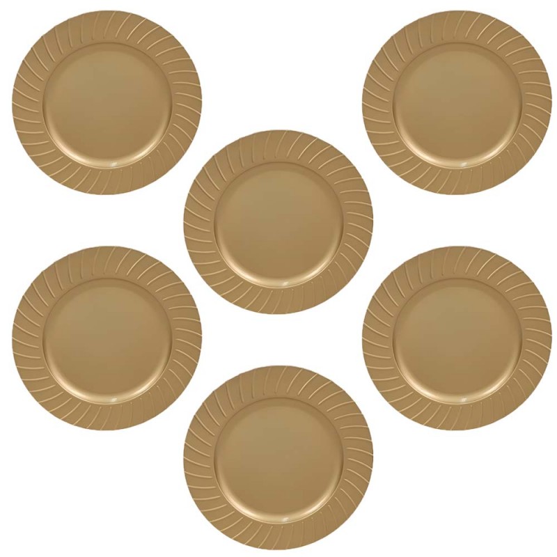 COSEDACASA Vi propone questo raffinato Set di 6 sottopiatti di colore oro con eleganti decori in rilievo.