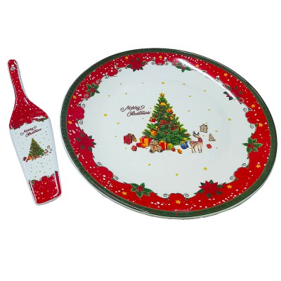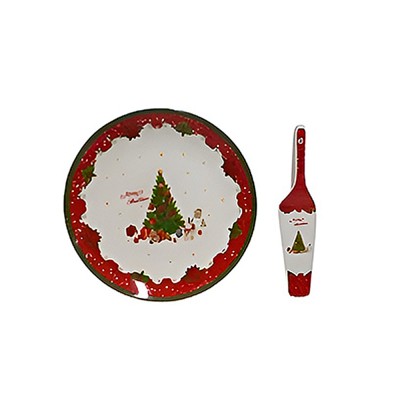 Incluso: paletta per dolci in ceramica con decorazioni natalizie coordinate