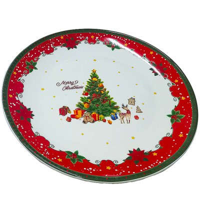 Piatto tondo in ceramica smaltata decorato a tema natalizio