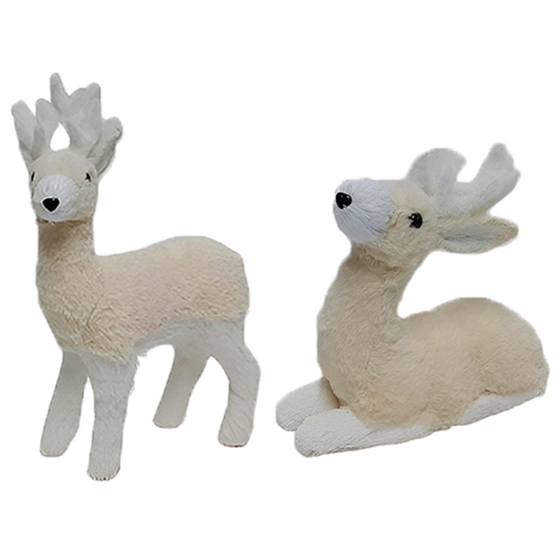 COSEDACASA Vi propone un incantevole set decorativo natalizio composto da 2 renne in pelliccia sintetica, perfette per ricreare un’atmosfera magica e accogliente durante le festività. L'effetto tessuto della pelliccia nei toni bianco neve e beige caldo, abbinato al design realistico, rende questa ambientazione una scelta ideale per la casa, uffici, vetrine e locali pubblici.