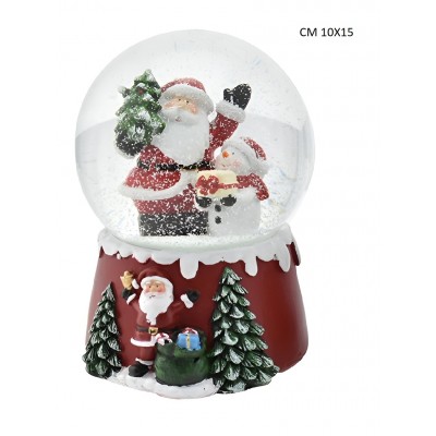 Ampolla natalizia con globo d’acqua contenente scena babbo natale.