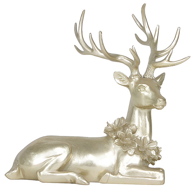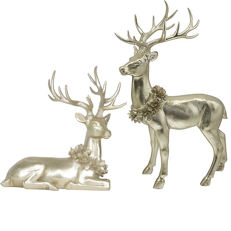 COSEDACASA Vi propone una bellissima coppia di renne in resina dorata, una alzata e una seduta, che aggiungeranno un tocco di eleganza alla vostra casa durante le festività natalizie.