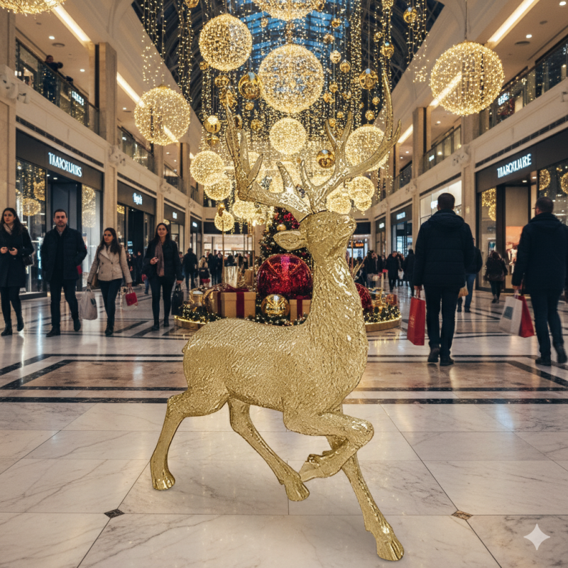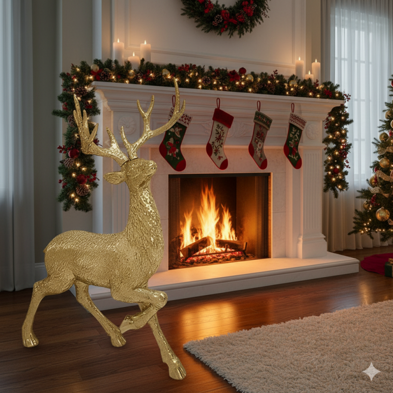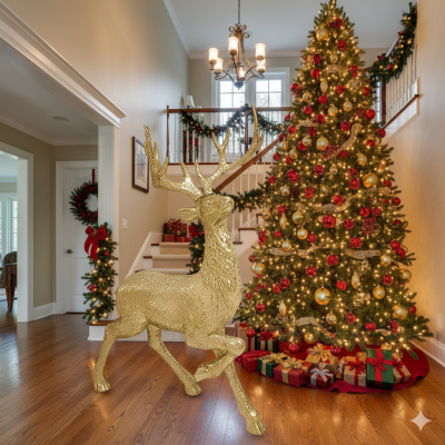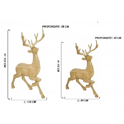 COSEDACASA Vi propone un Set di 2 renne cervi Giganti Decorative Natalizie in Oro Glitter, realizzata in resina di alta qualità, dal forte impatto scenico ed estremamente elegante. Questa scultura ornamentale rappresenta un maestoso cervo glitterato, perfetto per chi desidera creare un’atmosfera unica e raffinata durante il periodo natalizio o per eventi speciali.