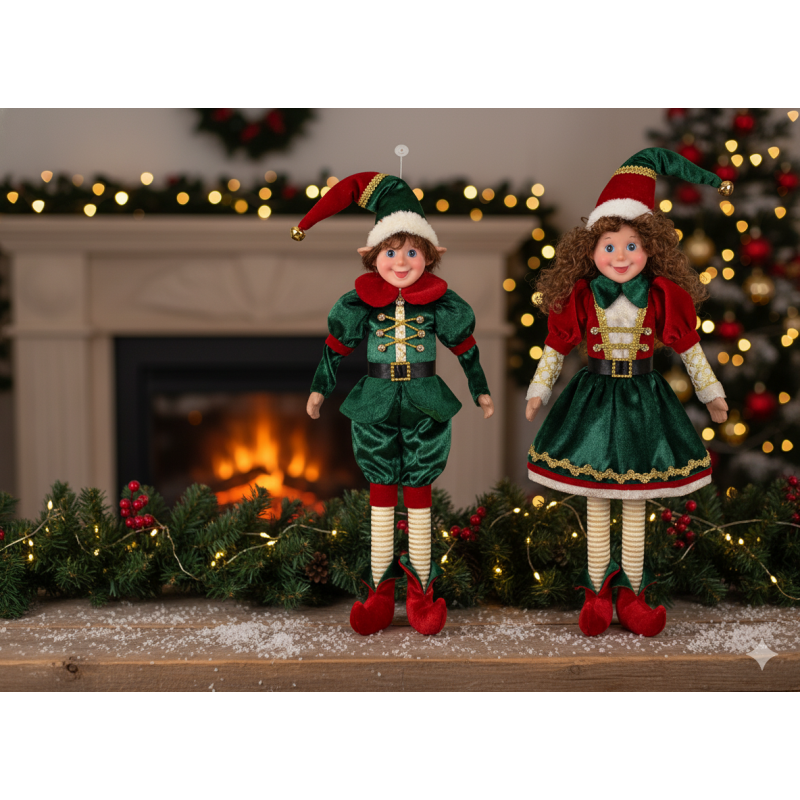 Gli elfi natalizi lui e lei sono ideali da posizionare su mensole, sotto l’albero, sul camino o all’interno di vetrine e negozi per creare una splendida atmosfera di Natale.