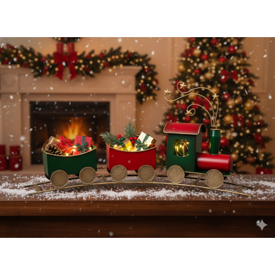 Il suo design curvo e le ruote dorate rendono il trenino stabile e visivamente armonioso, ideale per aggiungere un tocco di tradizione e allegria alle decorazioni di Natale.