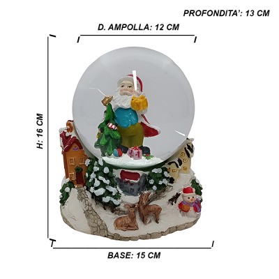 Ampolla natalizia con globo d’acqua (diametro 12 cm) contenente scena babbo natale.