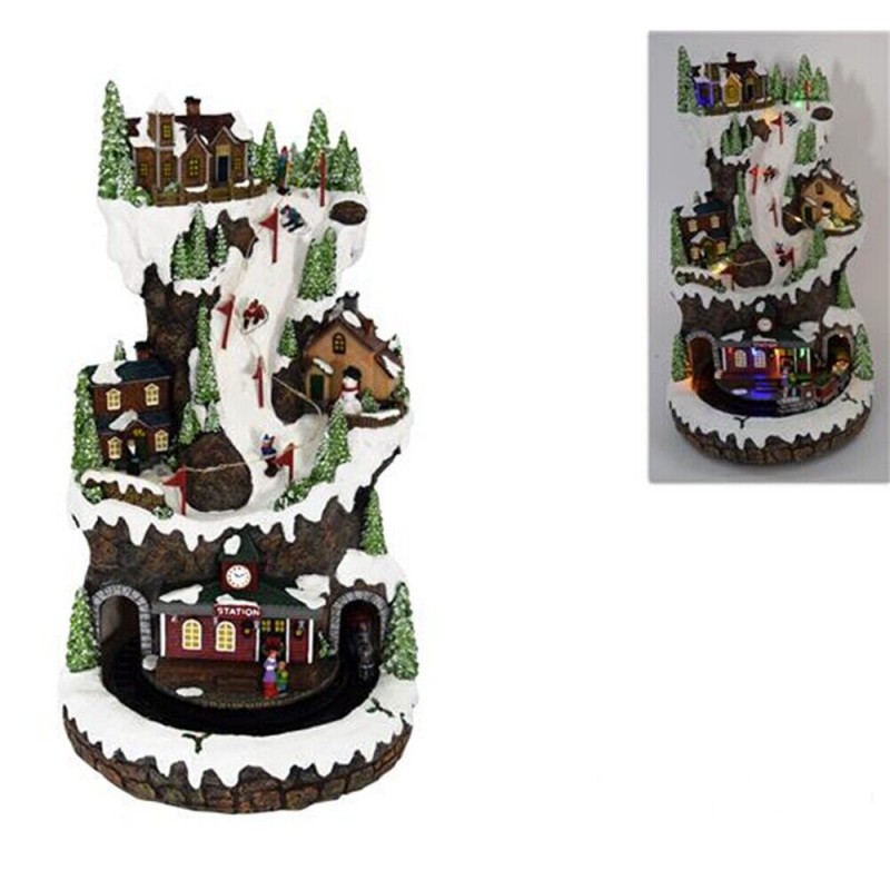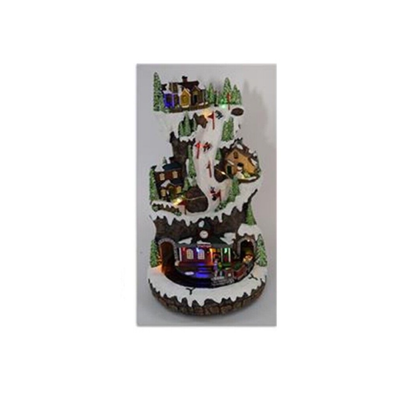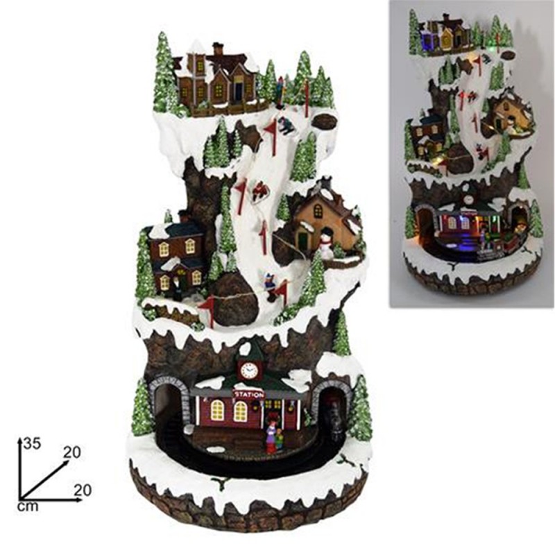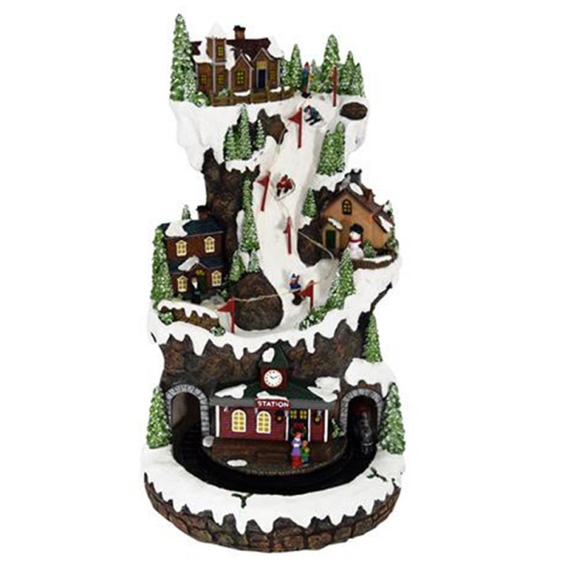 Il villaggio si compone di diversi elementi scenici: casette innevate, alberi di Natale, personaggi, paesaggi e un trenino elettrico che si muove in circolo alla base. Il tutto è accompagnato da luci LED integrate, che illuminano il paesaggio, esaltandone i dettagli e creando un’atmosfera suggestiva.