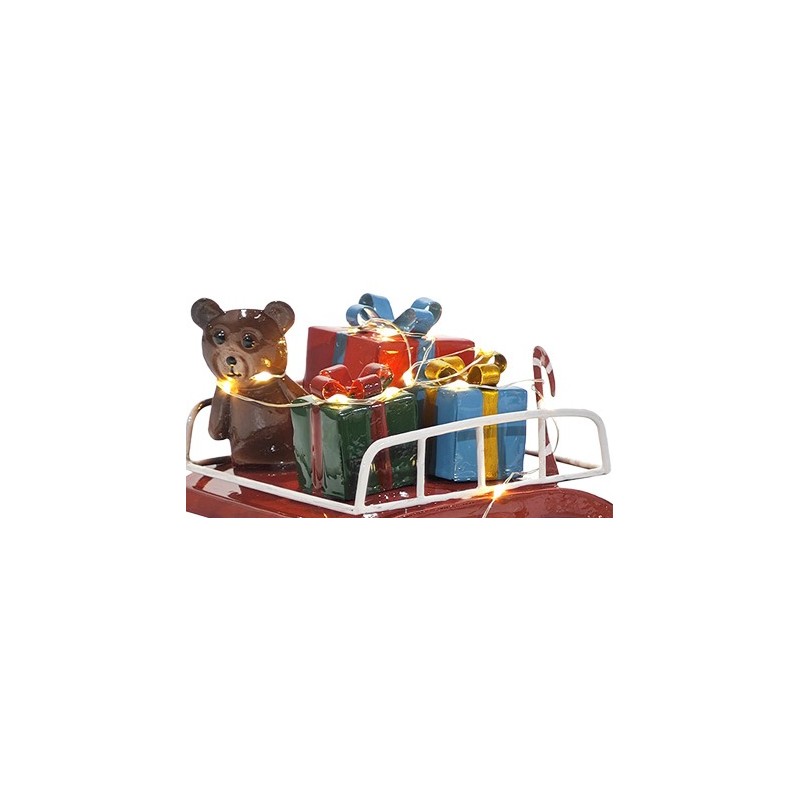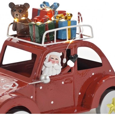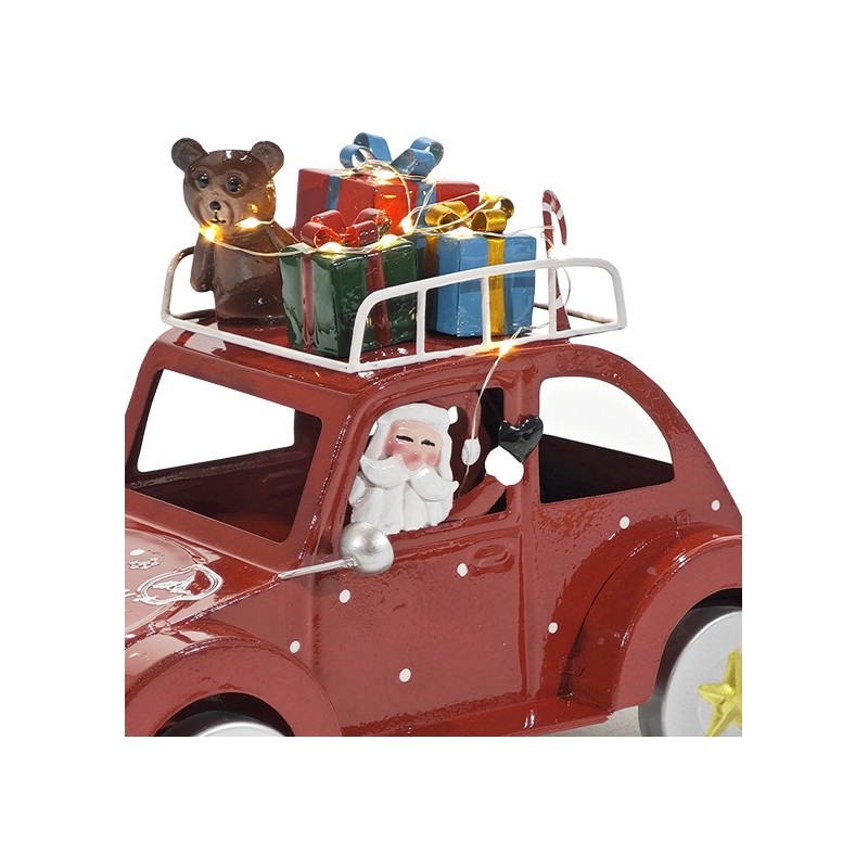 Macchina retrò natalizia in metallo con Babbo Natale e pacchi regalo