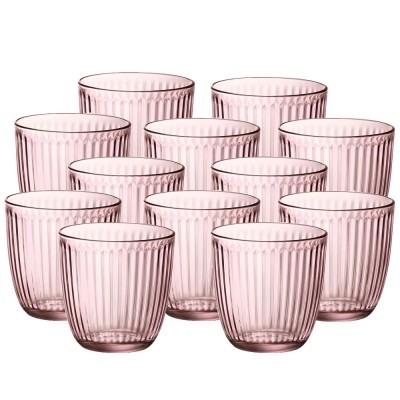 COSE DA CASA VI PROPONE: il nostro esclusivo set di 12 bicchieri colorati in vetro rosa da 26.5 cl, perfetti per rendere ogni occasione speciale e la tua tavola un’opera d’arte.