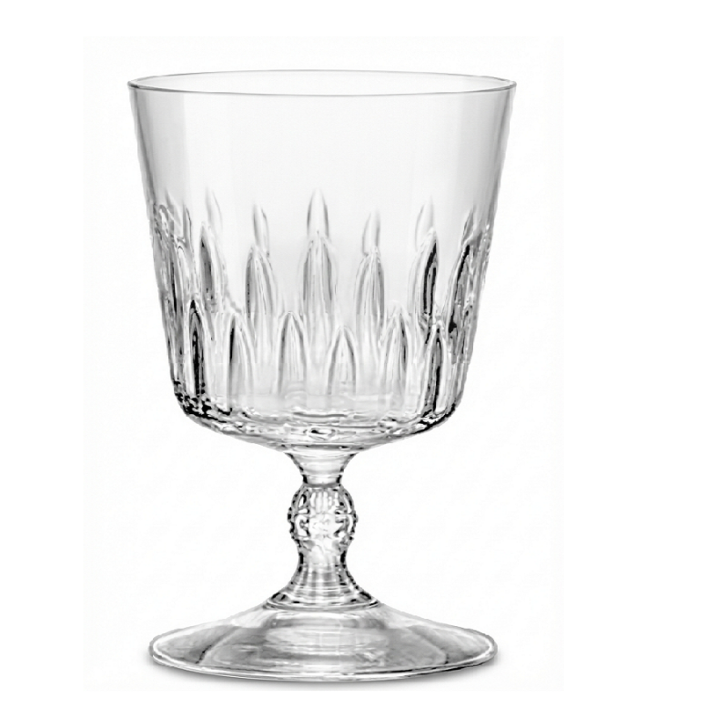 Ogni bicchiere misura altezza 16,5 cm, con un diametro superiore di 8,5 cm, e presenta un piede stabile che aggiunge charme e praticità durante l’uso. L’effetto diamante inciso nel vetro richiama le linee della collezione "Cedoro Diamante", con cui si abbina perfettamente per un effetto tavola coordinato e spettacolare.