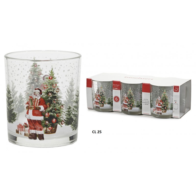 Set 6 bicchieri natalizi da 25 cl in vetro