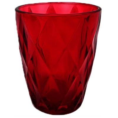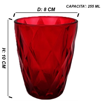 Set di 6 bicchieri rossi in vetro con elegante lavorazione esterna a forma diamantata.