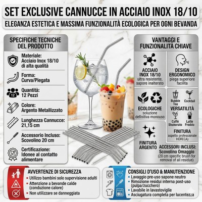 ECOLOGICHE E RIUTILIZZABILI: La soluzione definitiva per ridurre l'impatto ambientale, eliminando definitivamente lo spreco delle cannucce monouso.