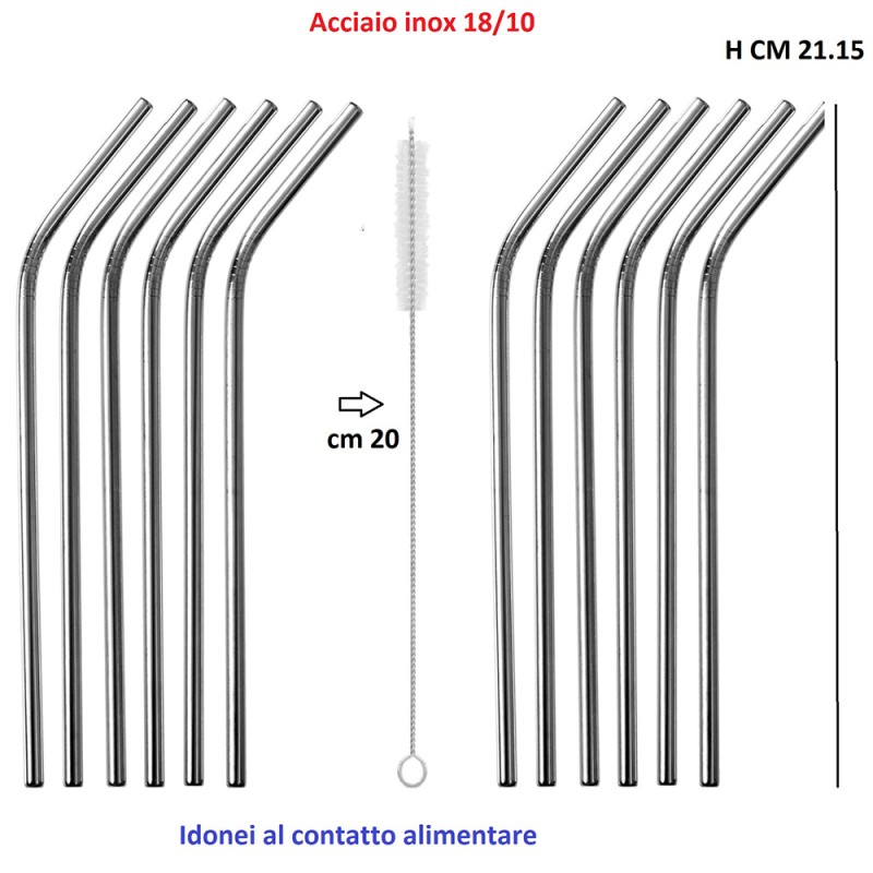 Cose da Casa vi propone soluzioni intelligenti e di stile, pensate per chi non vuole rinunciare alla bellezza nella propria quotidianità. Elegante set da 12 cannucce realizzate in pregiato acciaio inox 18/10 di colore argento lucido.Le cannucce presentano una pratica curvatura e una lunghezza di 21,15 cm, ideali per ogni tipo di bicchiere.Il kit include in omaggio uno scovolino da 20 cm per una pulizia profonda e immediata dopo l'uso.Prodotto certificato idoneo al contatto alimentare, perfetto per un uso domestico o professionale.