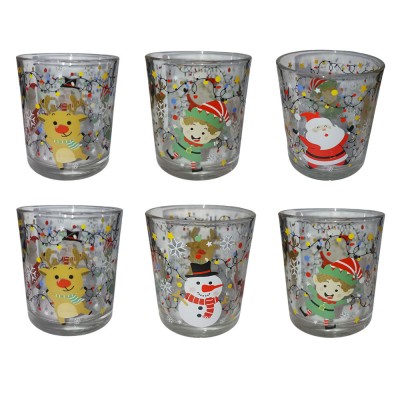 Set di 6 bicchieri in vetro da 25 cl con decorazioni natalizie assortite: gnomi, elfi, Babbo Natale, renna e scritta "Merry Christmas". Perfetti per le festività e per decorare la tua tavola.