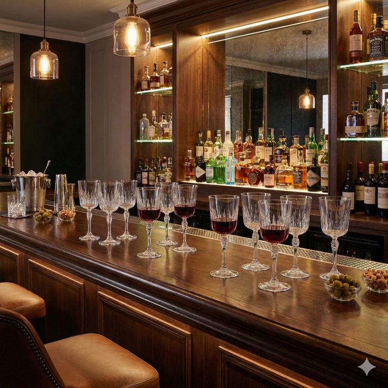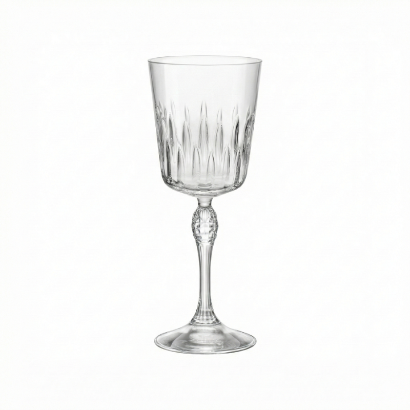 La collezione Celebrazione è pensata per chi desidera una mise en place scenografica e tattile. La coppa e lo stelo sono impreziositi da raffinate lavorazioni superficiali, incisioni e rilievi che richiamano lo stile dei calici d'epoca, conferendo personalità e carattere alla tavola. Questa texture luminosa non è solo decorativa, ma funzionale all'esperienza di degustazione: riflette la luce creando giochi brillanti ed esalta le note cromatiche dei vini rossi serviti.