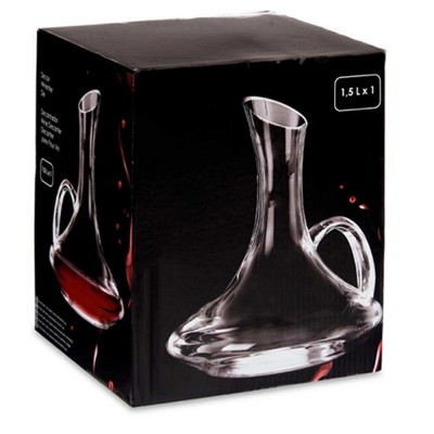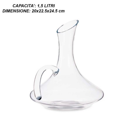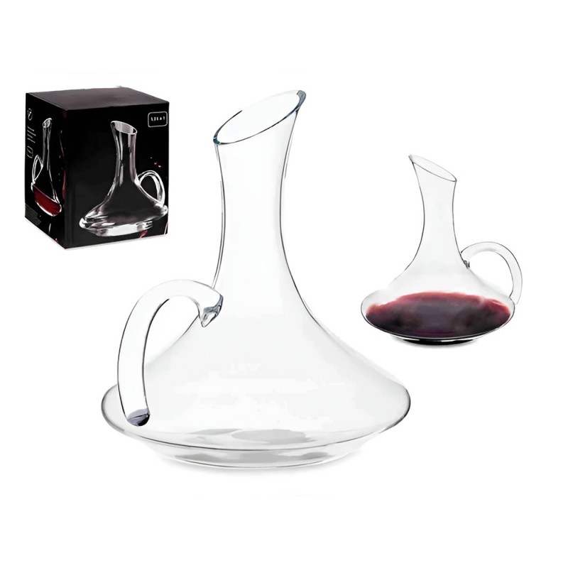 Elegante decanter da 1500 ml in vetro trasparente. Ideale per esaltare il gusto di vini rossi e bianchi. Il design dritto con manico facilita il trasporto e il versaggio a tavola. Perfetto per uso professionale o domestico, viene fornito in una pratica scatola regalo. Un accessorio indispensabile per ogni amante del vino.