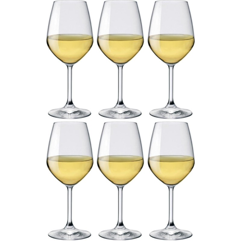 Set di 6 calici da degustazione per vini bianchi da 440 ml ciascuno, in vetro trasparente di alta qualità. Design elegante e funzionale, ideali per casa, ristorazione ed enoteche. Prodotto Made in Italy, consegnato in confezione alveolare originale Bormioli.