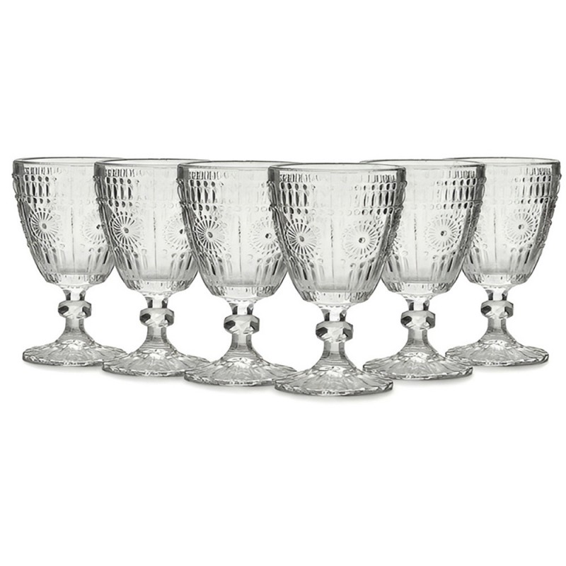 Cose da casa vi propone un'esperienza di degustazione superiore grazie a questo set di calici in vetro trasparente. Si distingue per una lavorazione in rilievo unica, capace di riflettere la luce e valorizzare il colore delle bevande servite. Realizzati con materiali selezionati e processi produttivi d'eccellenza, questi bicchieri uniscono l'estetica del design d'epoca alla robustezza necessaria per l'uso moderno.