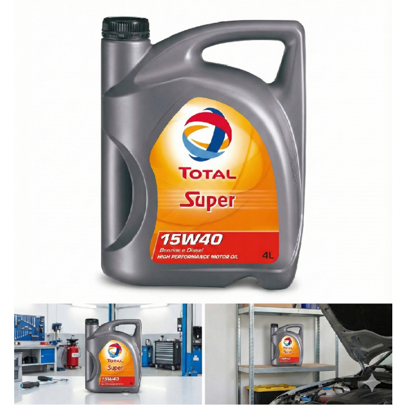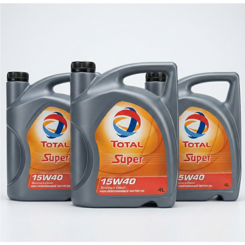 cosedacasa vi propone il Kit Convenienza Olio Motore Total Super 15W40. L'offerta comprende 3 taniche da 4 litri, per un volume complessivo di 12 litri di lubrificante di alta qualità.