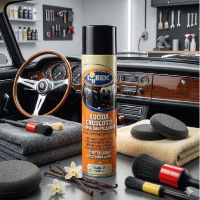 Lucida Cruscotti Auto spray da 600 ml,by LUBE-X ideale per la pulizia, la protezione e la lucidatura delle superfici interne del veicolo. La sua formula specifica è studiata per rinnovare l’aspetto del cruscotto e delle parti in plastica, donando un effetto brillante e uniforme senza ungere.