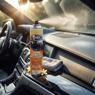Il prodotto aiuta a prevenire l’accumulo di polvere grazie all’azione antistatica e contribuisce a proteggere le superfici dall’usura quotidiana e dall’esposizione alla luce. La profumazione alla vaniglia rilascia una piacevole sensazione di pulito all’interno dell’abitacolo.