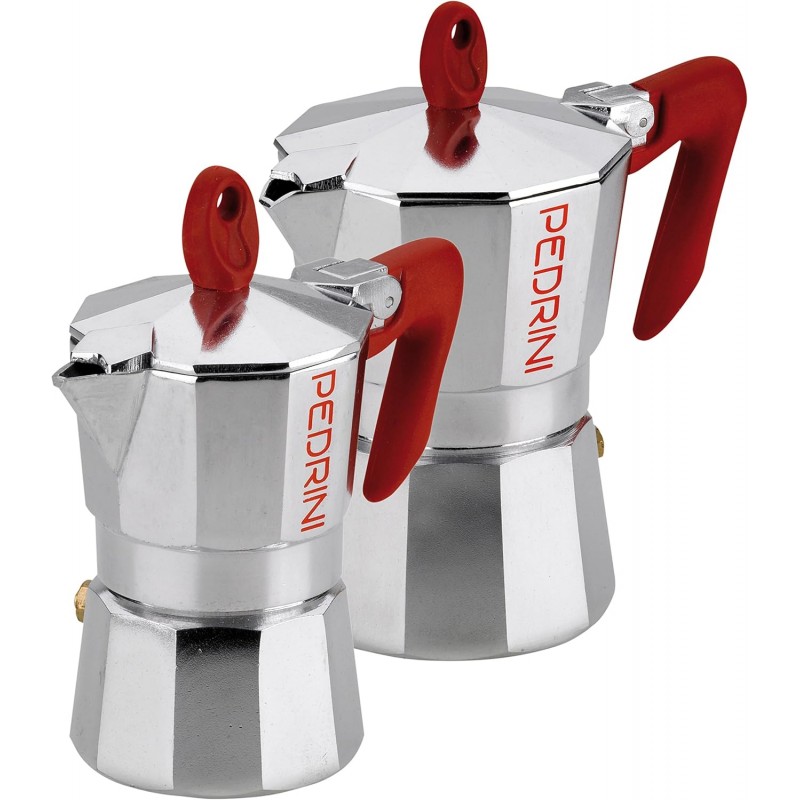 Entrambe le caffettiere sono costruite in lega di alluminio di alta qualità conforme alla normativa EN 601, garantendo un’eccellente conduzione termica e la massima sicurezza alimentare. Il design, frutto della progettazione italiana Pedrini, include guarnizioni in silicone atossico di lunga durata e valvole di sicurezza controllate al 100%. I manici ergonomici sono progettati per resistere a temperature fino a 210 gradi centigradi (410 gradi Fahrenheit), assicurando una presa confortevole e protetta dal calore durante l'uso su fornelli a gas o elettrici.
