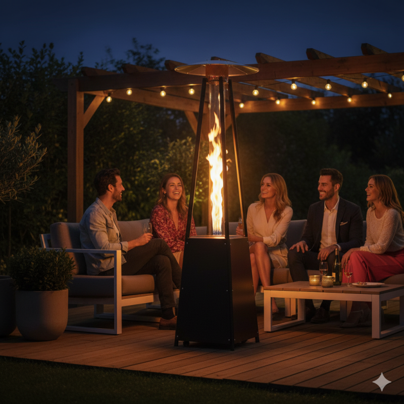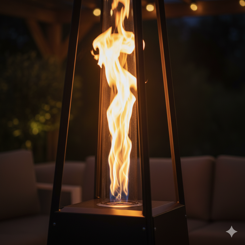COSEDACASA Vi propone un elemento di design e funzionalità indispensabile per prolungare le vostre serate all'aperto. Il nostro Riscaldatore a Fiamma Piramidale da 13 kW combina una potente emissione di calore con l'affascinante visione di una fiamma danzante, trasformando il vostro spazio esterno in un ambiente accogliente ed elegante.