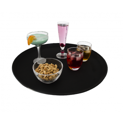 Set di 3 Vassoi antiscivolo da bar rotondo realizzato in polipropilene resistente, ideale per il servizio professionale di bevande e piatti.