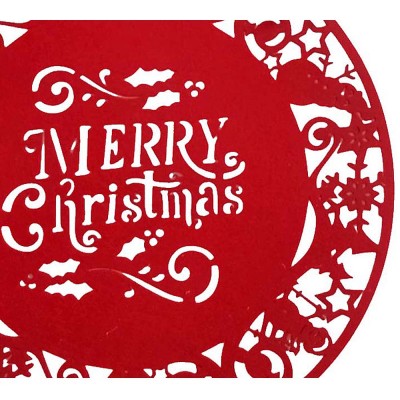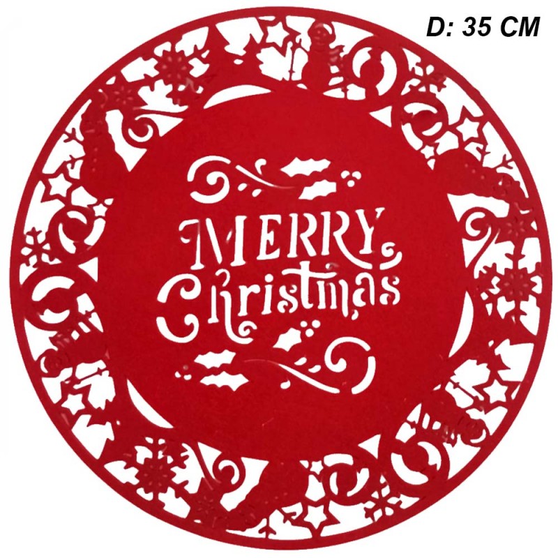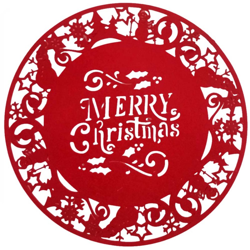 Ogni sottopiatto presenta al centro la scritta "Merry Christmas" elegantemente intagliata, mentre lungo tutto il bordo troviamo decori natalizi ritagliati con precisione: pupazzo di neve, fiocchi di neve, stelle e alberelli.