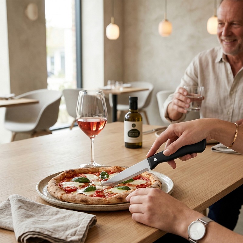 Taglio preciso: dentellatura speciale progettata per carni rosse, bianche, pizze e verdure.