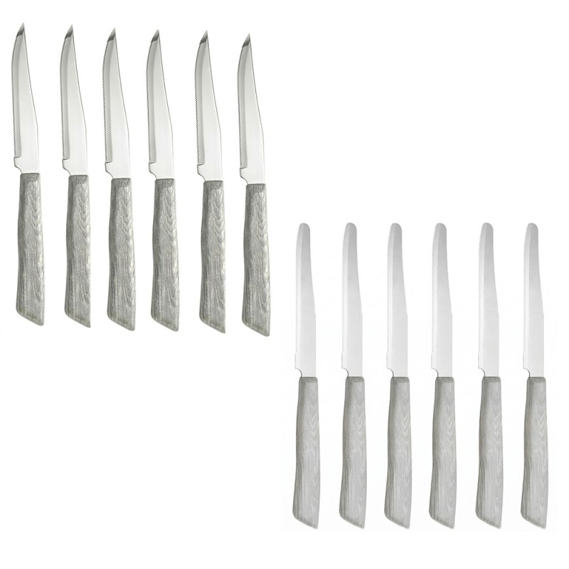 Questo set completo da 12 pezzi include 6 coltelli con punta per carne e 6 con punta arrotondata universali. Realizzati in elegante color olmo sbiancato con texture effetto legno naturale, misurano 22 cm totali con lame in acciaio inox speciale da 0.8 mm. Se ordinato entro le 13:00 spediremo lo stesso giorno con codice tracking del corriere e consegna entro 48 ore (se il corriere non ha intoppi).