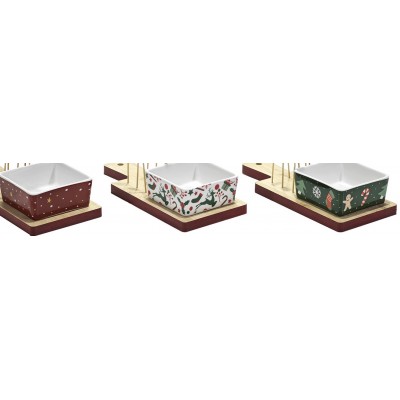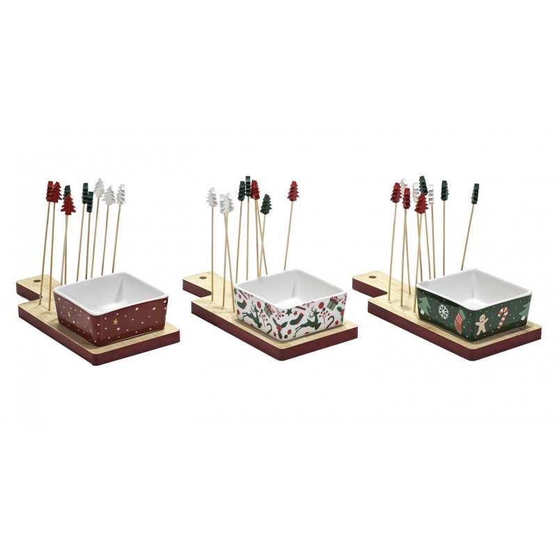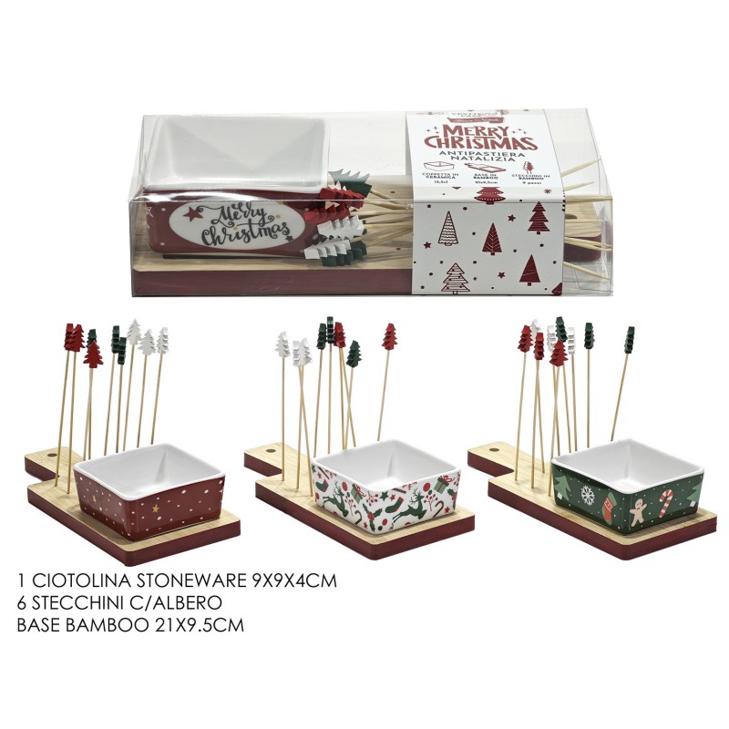 Design e Materiali Premium: La combinazione di ceramica di alta qualità, facile da pulire e igienica, con il legno di bambù ecologico e resistente, garantisce un prodotto di lunga durata e dal forte impatto estetico. Il design è studiato per le festività, con gli stecchini a tema Albero di Natale che aggiungono un tocco di gioia e festività.