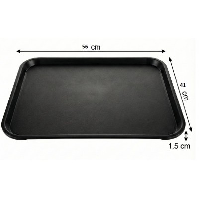 La superficie antiscivolo (no-slip) aderisce perfettamente al fondo delle stoviglie, permettendo di muoversi con sicurezza anche in situazioni di lavoro frenetiche. Il colore nero opaco conferisce un tocco di eleganza e professionalità, rendendolo adatto a qualsiasi stile di arredamento. Con le sue dimensioni generose di 56 x 41 cm e un bordo alto 1,5 cm, offre ampio spazio per il servizio mantenendo al contempo un peso contenuto per non affaticare l'operatore. Facile da pulire e resistente all'usura, è la scelta ideale per i professionisti del settore Ho.Re.Ca. e per chi cerca qualità e durata.