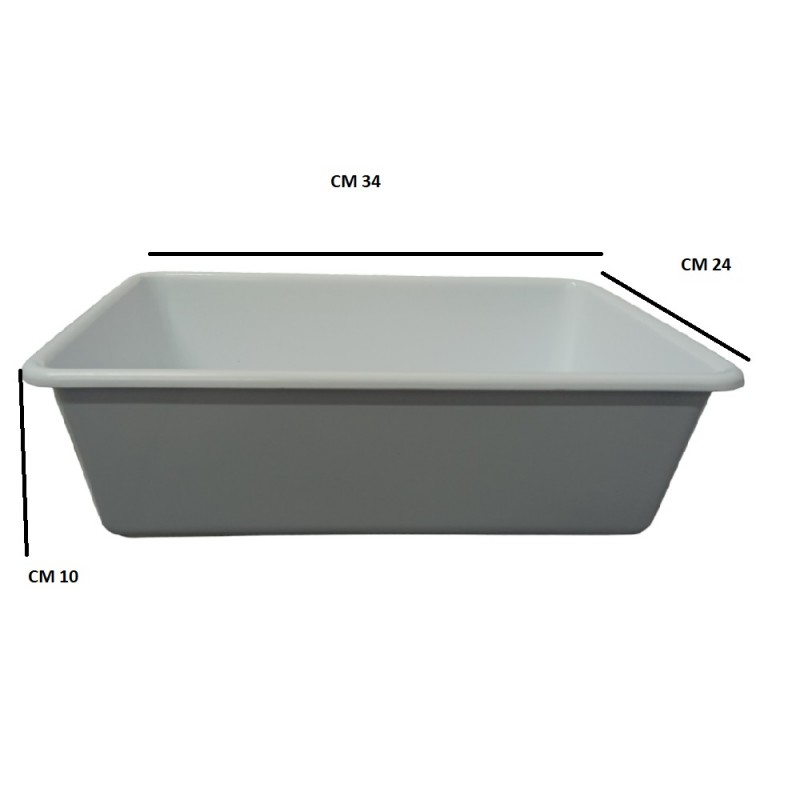 Vaschetta frigo bianca professionale, capacità 5 litri, realizzata in plastica atossica, rigida e riciclabile, Made in Italy.
