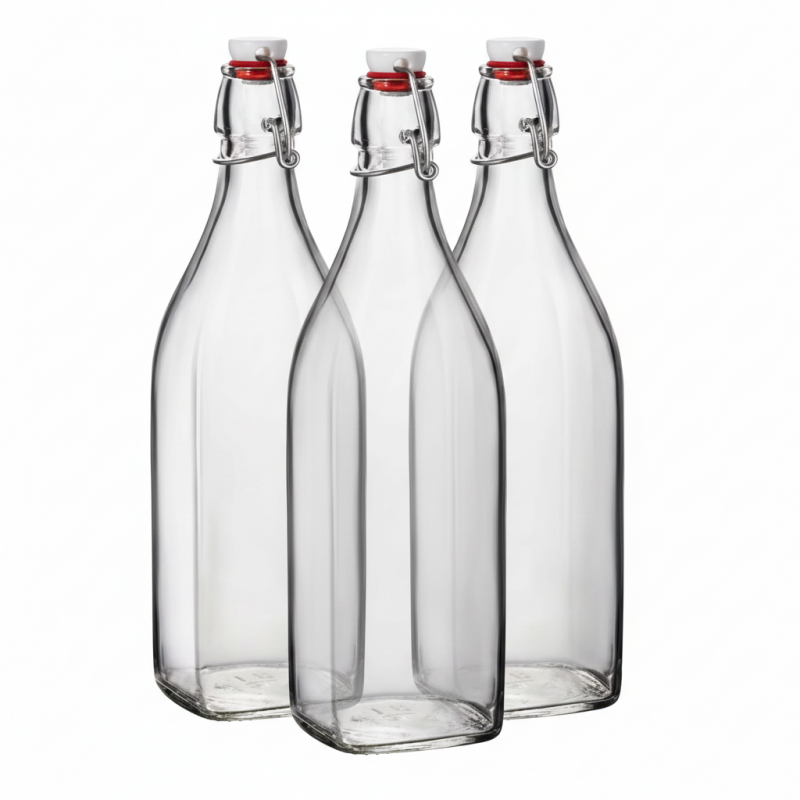 Per una manutenzione ottimale, lavare le bottiglie in lavastoviglie o a mano con detergenti non abrasivi. Si raccomanda di asciugare bene il meccanismo metallico della chiusura per prevenire eventuali depositi di calcare. In caso di conservazione di oli, è consigliabile sciacquare periodicamente con acqua calda e aceto per rimuovere ogni residuo grasso e mantenere il vetro sempre limpido.