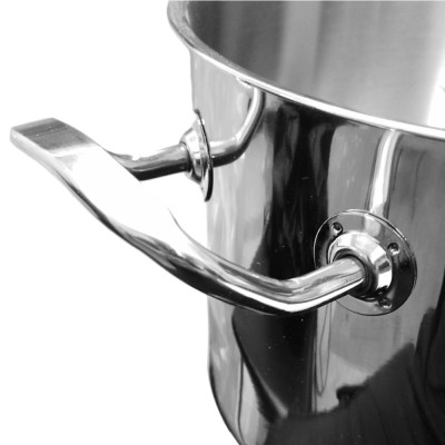 Ideale per la preparazione di grandi quantità di cibo come ad es. stufati, zuppe, ecc. in pregiato acciaio inox 18/10 lucido.