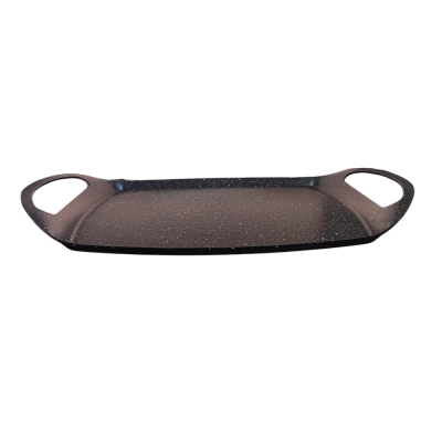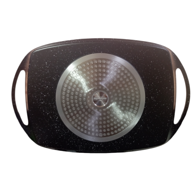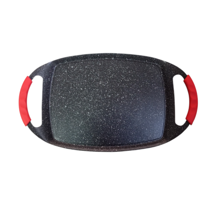 COSEDACASA Vi propone una bistecchiera rettangolare di alta qualità, ideale per arrostire carne, pesce e verdure 47x28cm. Questa piastra è realizzata in alluminio rivestito con un innovativo trattamento DYLON, garantendo un’ottima antiaderenza e la massima sicurezza per la salute. Grazie ai suoi due manici ergonomici in silicone inclusi, questa bistecchiera è progettata per un utilizzo comodo e sicuro, evitando scottature.