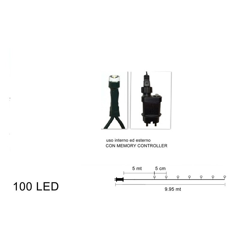 5 metri con le 100 minilucciole LED, posizionate ogni 5 cm