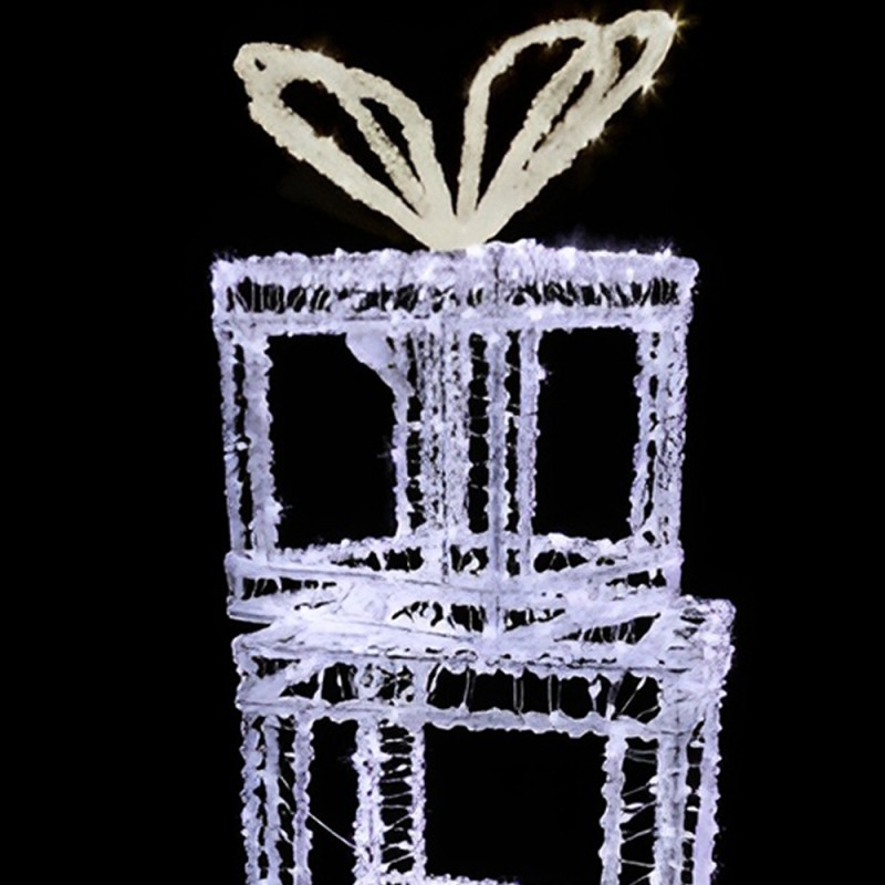 Realizzati in metallo resistente e plastica acri-lica di alta qualità, questi pacchi luminosi uniscono design, robustezza e sicurezza, offrendo una decorazione scenografica di grande impatto visivo.