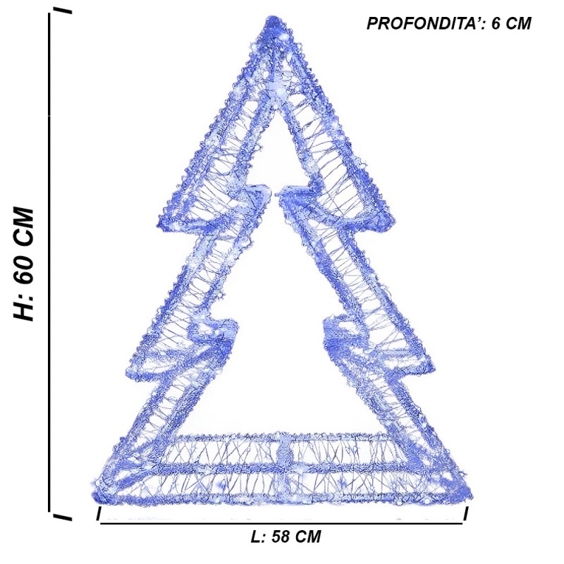 Albero di Natale Luminoso COSEDACASA – struttura in metallo con 600 luci LED Bianco freddo ghiaccio, da appendere o poggiare, dimensioni 60x58x6 cm, alimentazione 220V.