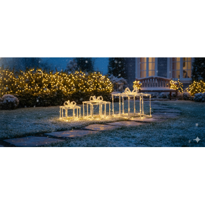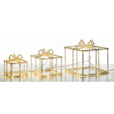 COSEDACASA Vi propone il raffinato Set 3 Pacchi Regalo Luminosi Dictroulux, una decorazione natalizia elegante e luminosa, ideale per arricchire gli ambienti interni ed esterni della vostra casa durante le festività.