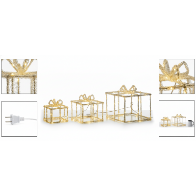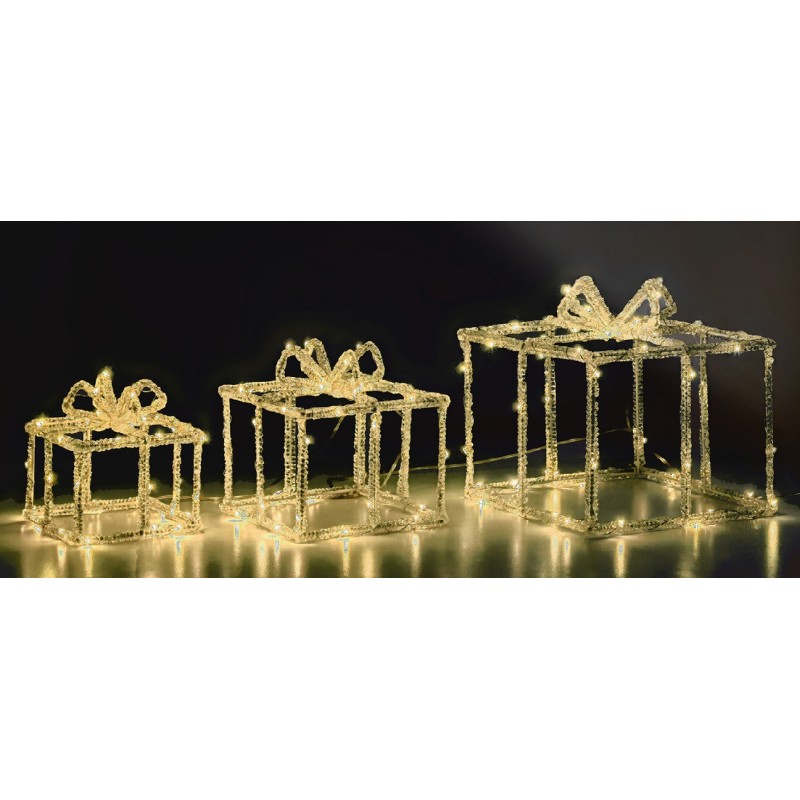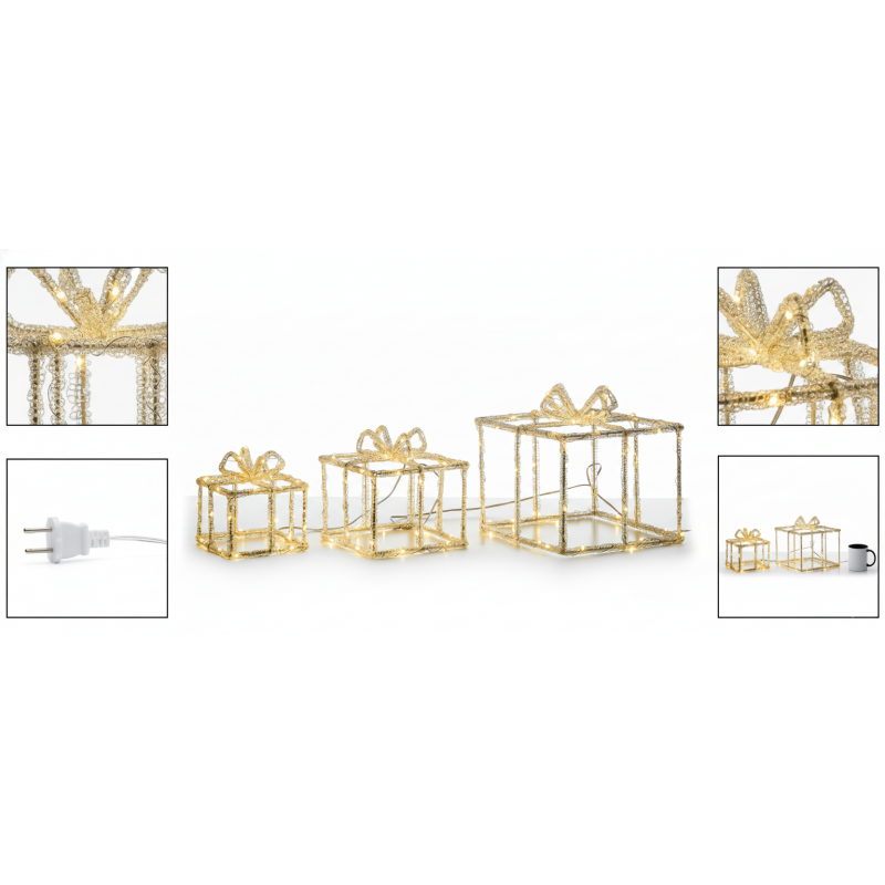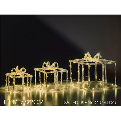 et composto da 3 pacchi regalo luminosi con 135 LED a luce bianco caldo
