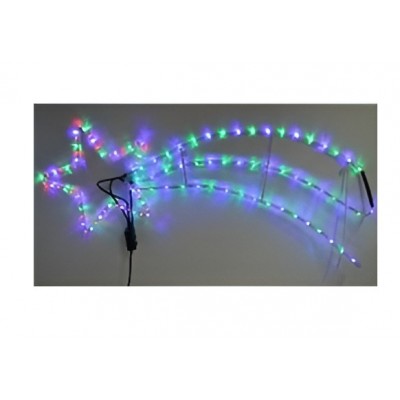 Illuminazione natalizia a forma di stella cometa, alta 50 cm e lunga125 cm, con 180 luci LED si puo' scegliere tra bianco freddo / caldo blu o multicolor ,la particolarita sta nell'effetto,la stella resta fissa mentre la coda ha un effetto movimento scorrevole,effetto unico. Cavo di alimentazione di 150 cm. Corrente 220/240 V - 50 Hz, potenza 7.2 watt, IP44 per uso interno ed esterno.